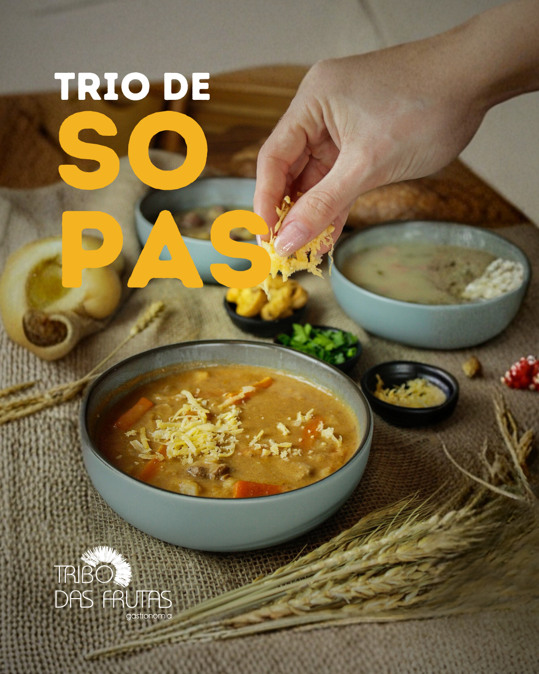As sopas mais pedidas do festival continuam no cardápio, para que você possa reviver seus sabores favoritos a qualquer momento. Uma deliciosa sopa cremosa servida na cumbuca, acompanhada de queijo ralado, crótons crocantes e cheiro verde. Escolha entre os sabores que conquistaram os paladares no festival e agora fazem parte do nosso cardápio permanente: