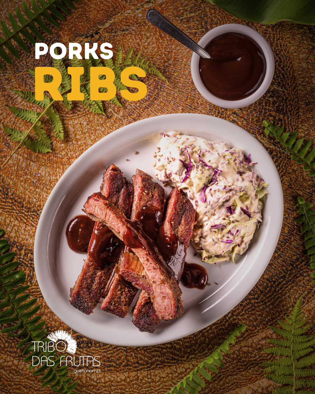 Costelinha suína marinada e assada ao barbecue. Acompanhando essa delícia, uma salada especial de repolho finamente fatiado misturado a um molho que traz frescor e crocância ao prato. Aplicamos a técnica low and slow de defumação, garantindo um sabor único. Defumada por 6 horas em lenha de ameixeira, essa costela suína é temperada com especiarias típicas do sul dos EUA, resultando em um equilíbrio perfeito entre adocicado e picante.